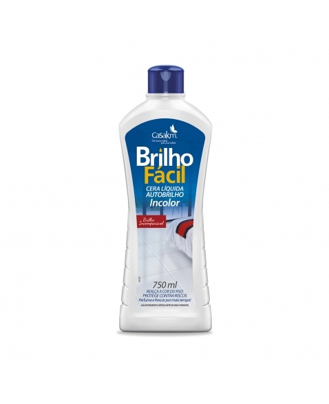 A cera líquida Brilho Fácil deixa o piso com aspecto espelhado e impecável, formando uma película especial, que reaviva cores, tem efeito antipó e protege contra riscos. Pode ser usado no Banheiro, Lavanderia, quarto e sala.