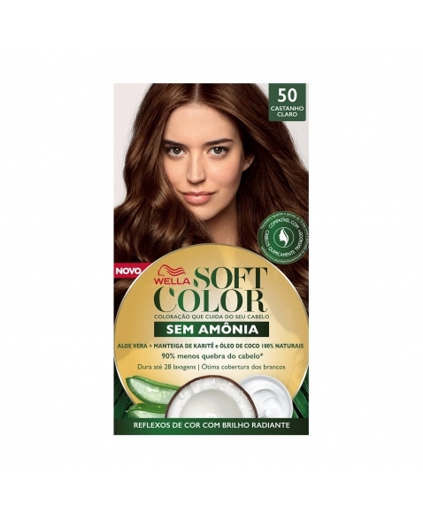Soft Color é a coloração que te dá reflexos com brilho radiante, 90% menos queda de fios e duração de até 29 lavagens. A fórmula da Tinta de Cabelo Soft Color não contém amônia e é compatível com cabelos quimicamente tratados. Além disso, possui ingredientes naturais como Aloe Vera, Manteiga de Karitê e Óleo de Coco, que garantem cuidado com seus cabelos, cobertura perfeita dos fios brancos e brilho por até 4 semanas. O kit contém um frasco com a coloração sem amônia, uma emulsão ativadora e um sachê de condicionador que realça o brilho. *Comparado a um cabelo não tratado com o condicionador do kit. Resultados podem variar de acordo com o tipo de cabelo.