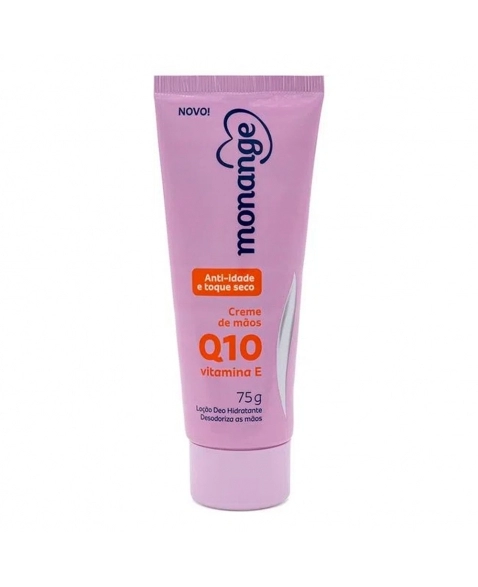 O hidratante de Mãos Monange Q10 e Vitamina E com Ação Desodorante hidrata e previne o envelhecimento da pele ao mesmo tempo. Ele possui ativos antioxidantes, ação anti-idade e reduz o ressecamento das mãos, mantendo-as com um toque seco. Sua aplicação é fácil, basta colocar um pouco de produto nas mãos limpas e massageá-las sempre que sentir necessidade. Sua textura é cremosa e ele é indicado para peles secas.