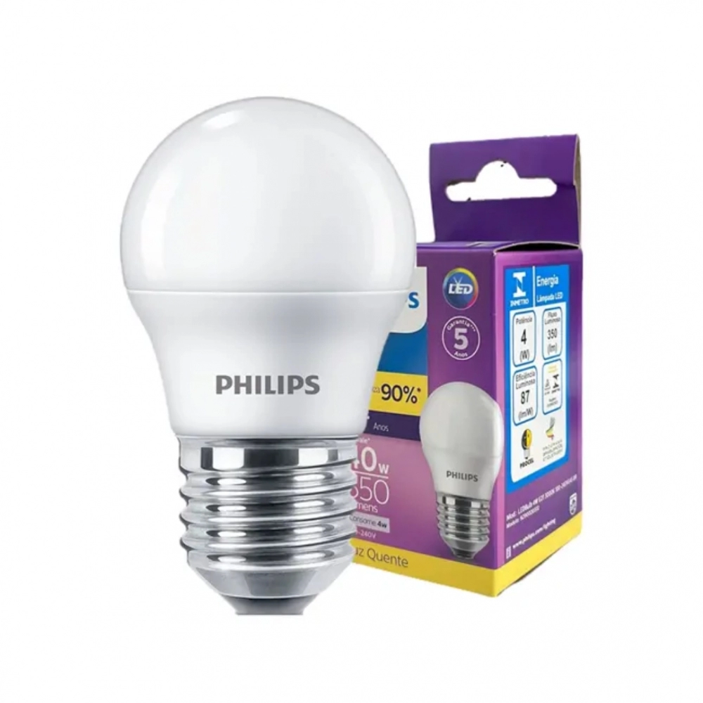 Lâmpada Philips Led Bulb Mini Luz Quente 4W E27 3000k