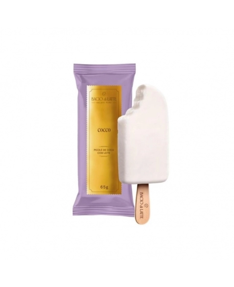 Gelato de coco com leite, com cobertura crocante de chocolate belga e pedaços de coco.