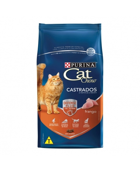 A Ração Cat Chow para gatos castrados ajuda na manutenção do peso ideal. Proporciona mais saúde ao felino. Controle das bolas de pelos. 100% completa e balanceada.