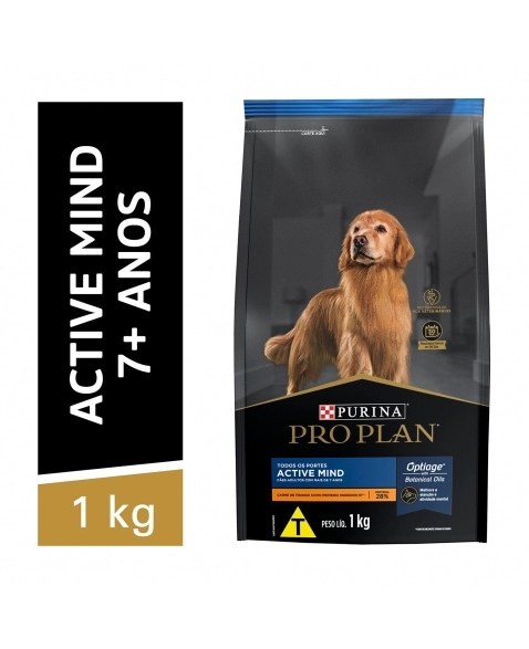 Ração Proplan Active Mind para Cães Adultos 7+ é uma dieta especialmente formulada para cães com 7 anos ou mais, com fonte natural de glucosamina, que ajuda a manter articulações saudáveis e uma mobilidade ótima. Contém uma proporção equilibrada de proteína e gordura para manter a massa muscular magra, além de uma combinação de antioxidantes naturais, vitaminas E e C, que ajudam a combater o estresse do envelhecimento.