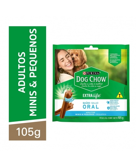 A higiene bucal é importante para maximizar a qualidade de vida do seu cão. PURINA® DOG CHOW® SAÚDE ORAL é um saboroso petisco que ajuda a promover a higiene bucal diária com 5 arestas limpadoras e cálcio, para manter dentes saudáveis e fortes.